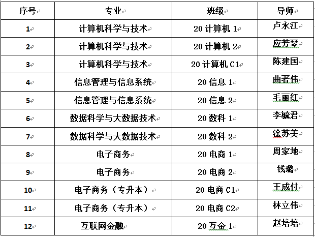 2020级新生专业导师安排工作已经结束,经审核,现将导师教师名单进行公布,请专业导师到分院教学办公室领取导师工作记录本,并做好新生专业导师见面会的准备工作(具体另行通知)。