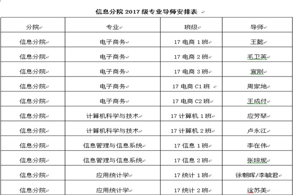 2017级新生专业导师安排工作已经结束,经审核,现将导师教师名单进行公布,请专业导师到分院教学办公室领取导师工作记录本,并做好新生专业导师见面会的准备工作(具体另行通知)。
