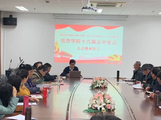 2020年12月29日下午,公司党总支于S3-504会议室,召开全体教师党员专题理论学习会,学习十九届五中全会会议精神。会议由党总支书记费松天主持。